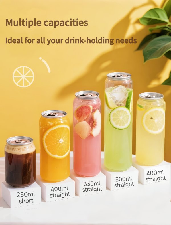 BSBH Customized Transparent PET Plastic Cans High Quality 250ml 330ml 500ml Food Grade PET Plastic Can with Easy Open Lids
