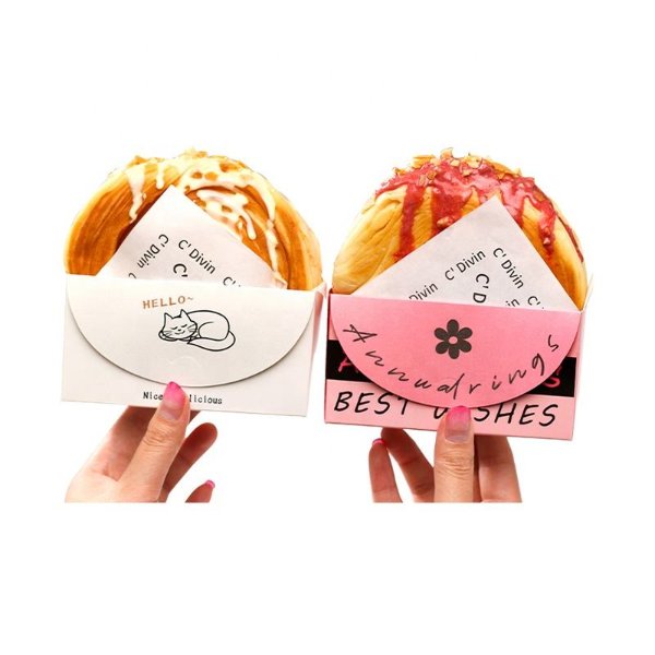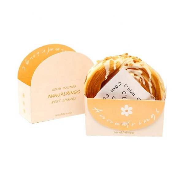 Custom Bagel Scoop Bakery Box for Round Croissants Foldable Logo Printed Waffle Sleeve Paper Mini Burger Churro Box Paper Sleeve