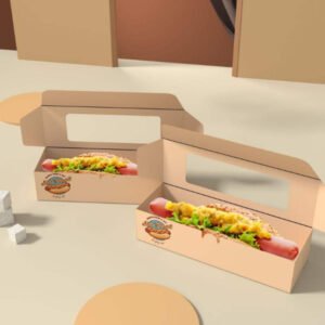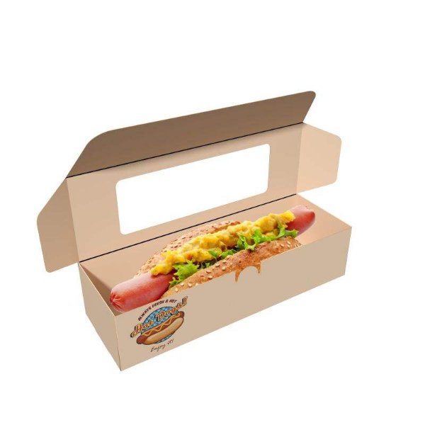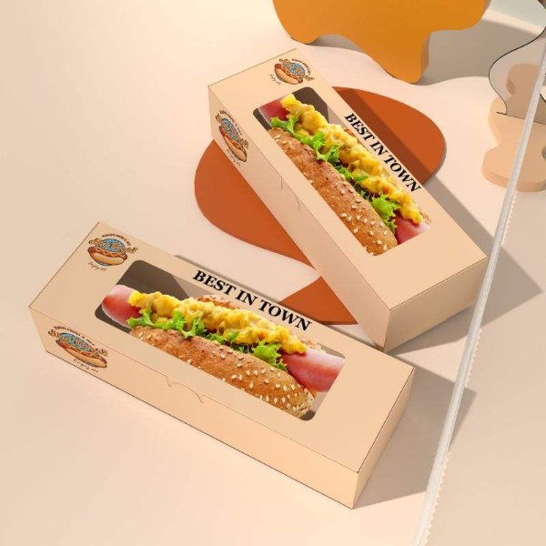 Custom Hot Dog Packaging Box With Window Disposable Food Sandwich Kraft Paper Box Takeaway Hot Dog Tray Box