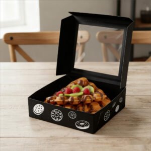 Custom Luxury Black Gold Bakery Boxes with Window for Trendy Cakes Croissants