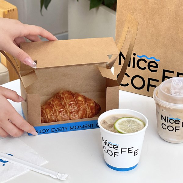 Customizable Commercial Croissant Bread Dessert Cake Takeaway Packaging Fold-Free Kraft Paper Handheld Recycled UV Logo Food