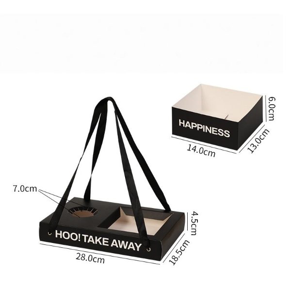 Customized Sandwich Cake Toast Cafe Beverage Cup Embedded Hand-Held Paper Tray Box for Coffee Shop