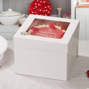 Hot Sale 8 10 12 Inch Square Cardboard Cake Boxes Tall Cake Box With Window White Bakery Boxes for Multi-Layer Cakes