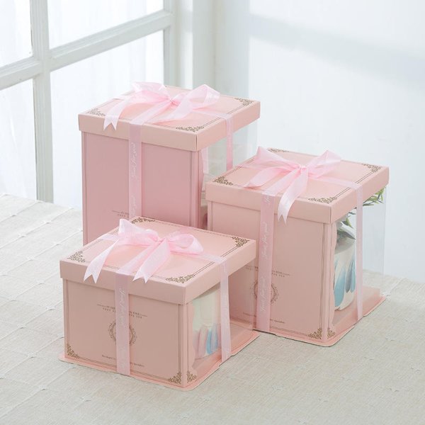 Hot Sale Pink Plastic and Paper Birthday Celebrate Cake Box 12inch Transparent Cake Boxes