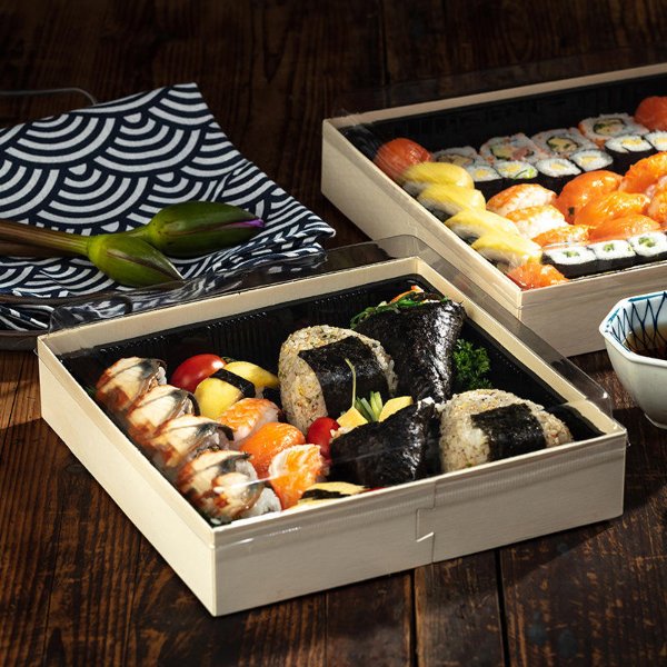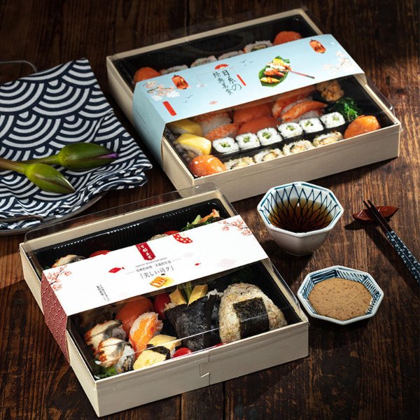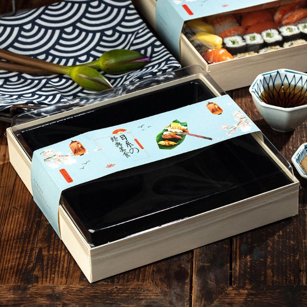 | Product Name | Wooden packaging sushi box | Material | Wooden + Plastic |