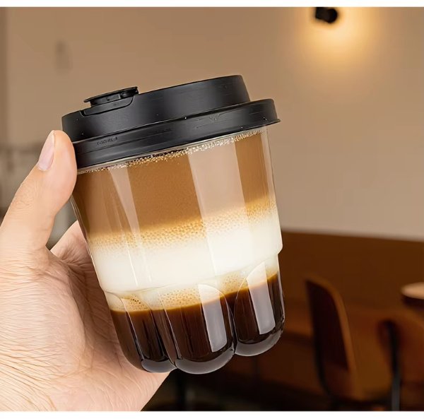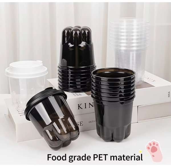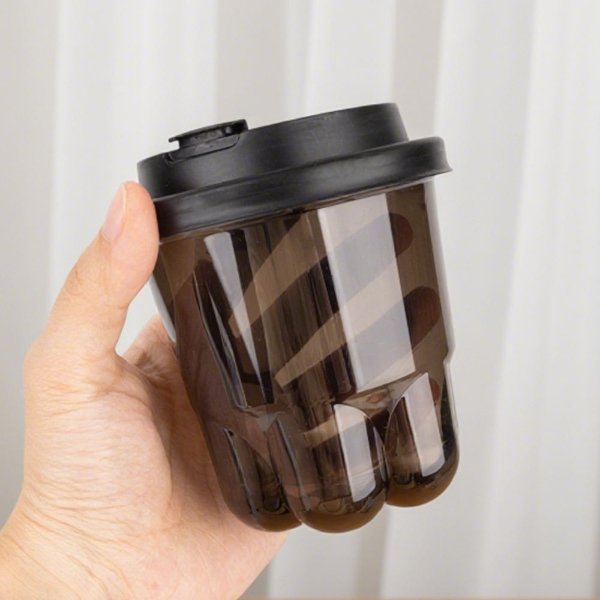 LOKYO Unique Design Take Away PET 360ML Clear Black Cups Cat Paw Bubble Tea Boba Juice Cup Custom Plastic Cups with Lids