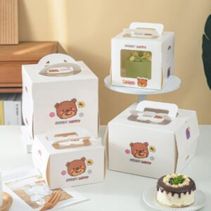 Wholesale Custom Cake Packing Box Wedding Gift Birthday pink Cake Box with Handle