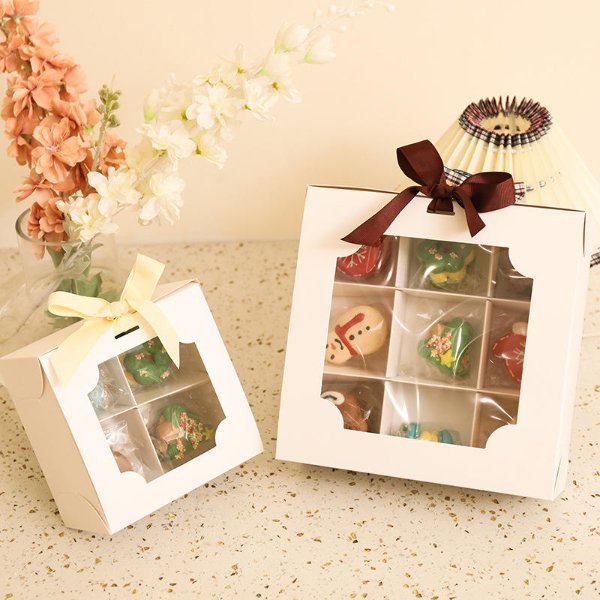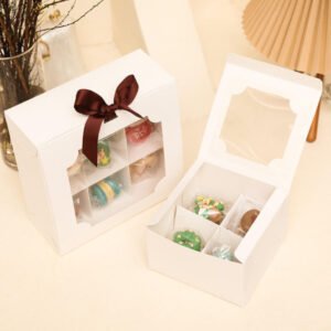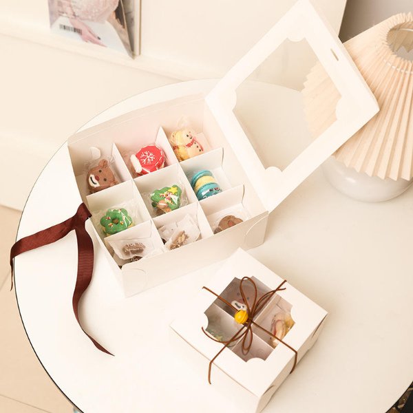 Wholesale Custom White Cardboard Cake Packaging Box 4/6/9 Grid Sweet Dessert Display with Insert Embossed Folding Box for Food