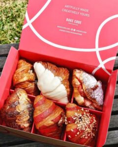 Wholesale Eco Friendly Customized Red Small Burger Croissant Box Sushi Bakery Chocolate Cake Catering Brownie Paper Packing Box